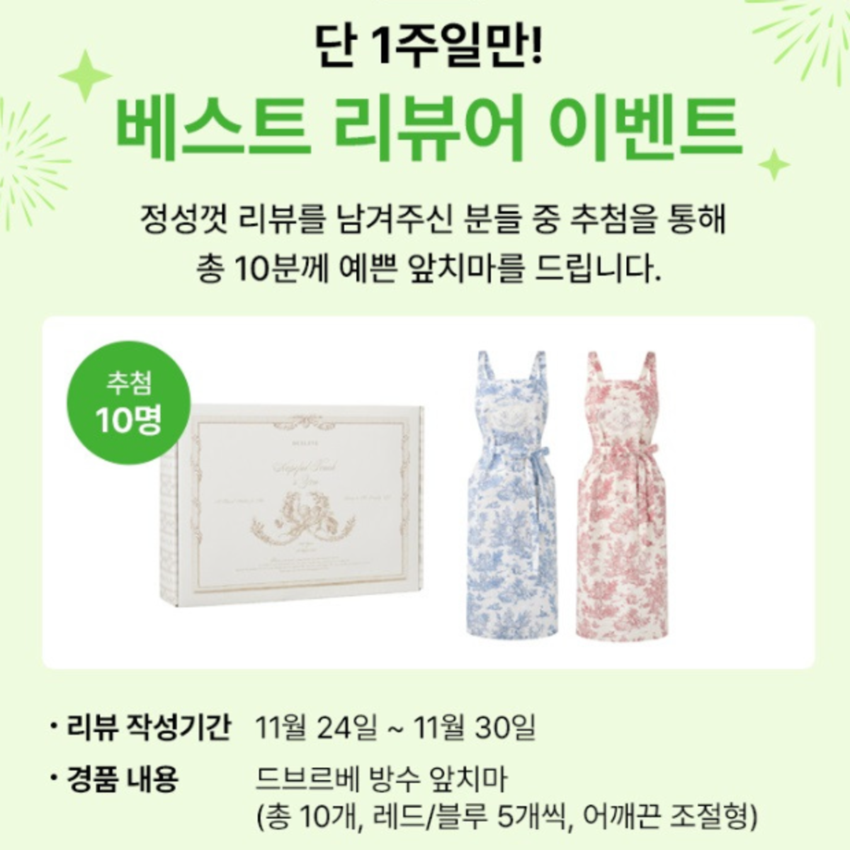 🎀 단 1주일! 베스트 리뷰어 ‘앞치마’ 이벤트